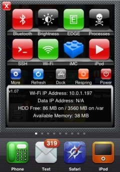 SBSettings is an essential (and totally free) application. Right after you jailbreak, after OpenSSH, this should be the second app you download off Cydia. SBSettings overlays a menu that contains the basic functions of the system “options” menus. This overlay menu is easily accessed by swiping the bar at the top of the screen with the time and contains things like Brightness, 3G, Wi-Fi, and other switches to turn things on and off.